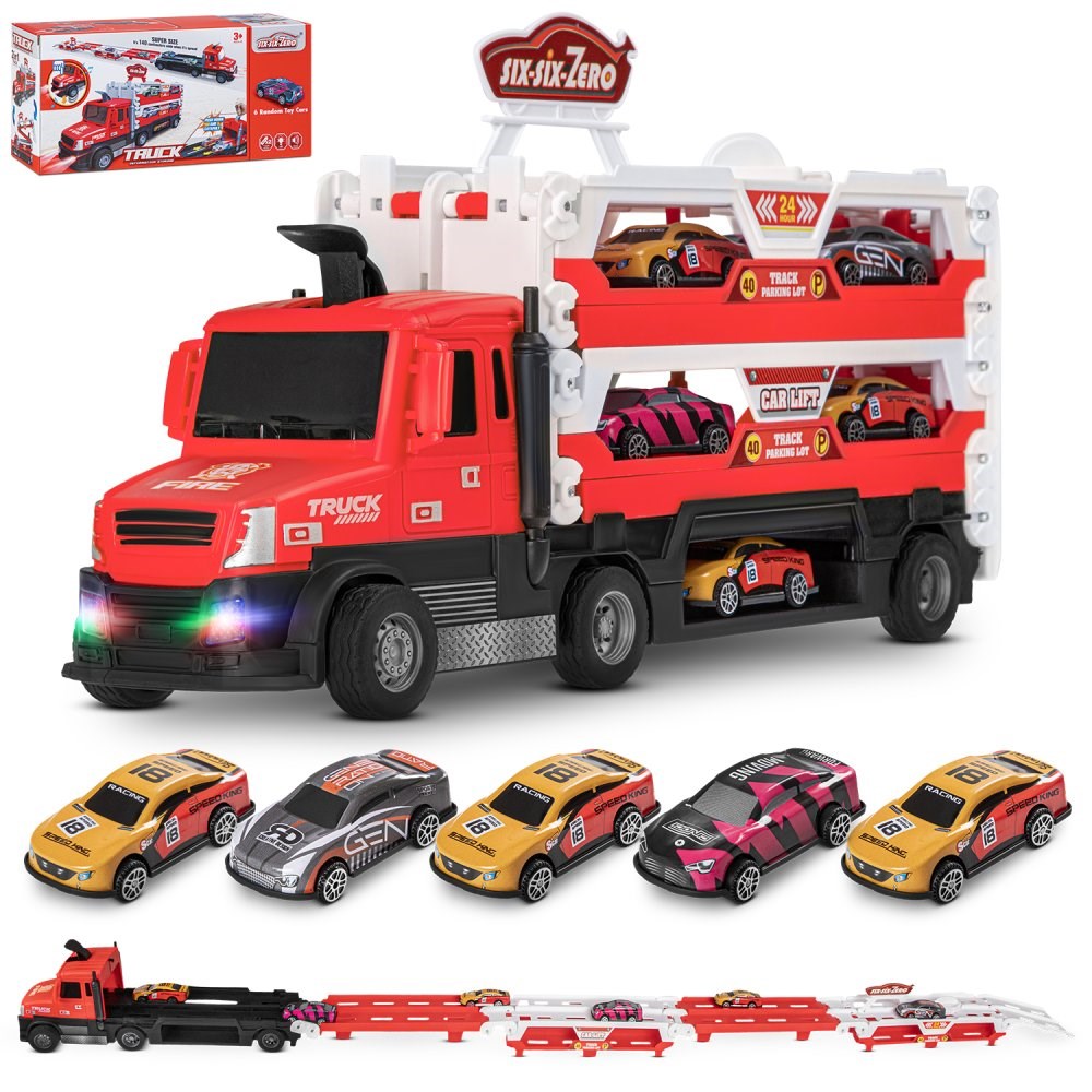 Автовоз-катапульта, раскладывается в трек с пусковым механизмом, цвет красный, в/к 35*9,6*15,4см
