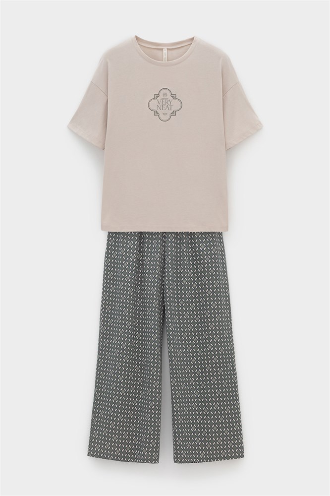 Е 20196/кремовый,узор пижама женская (футболка, брюки)