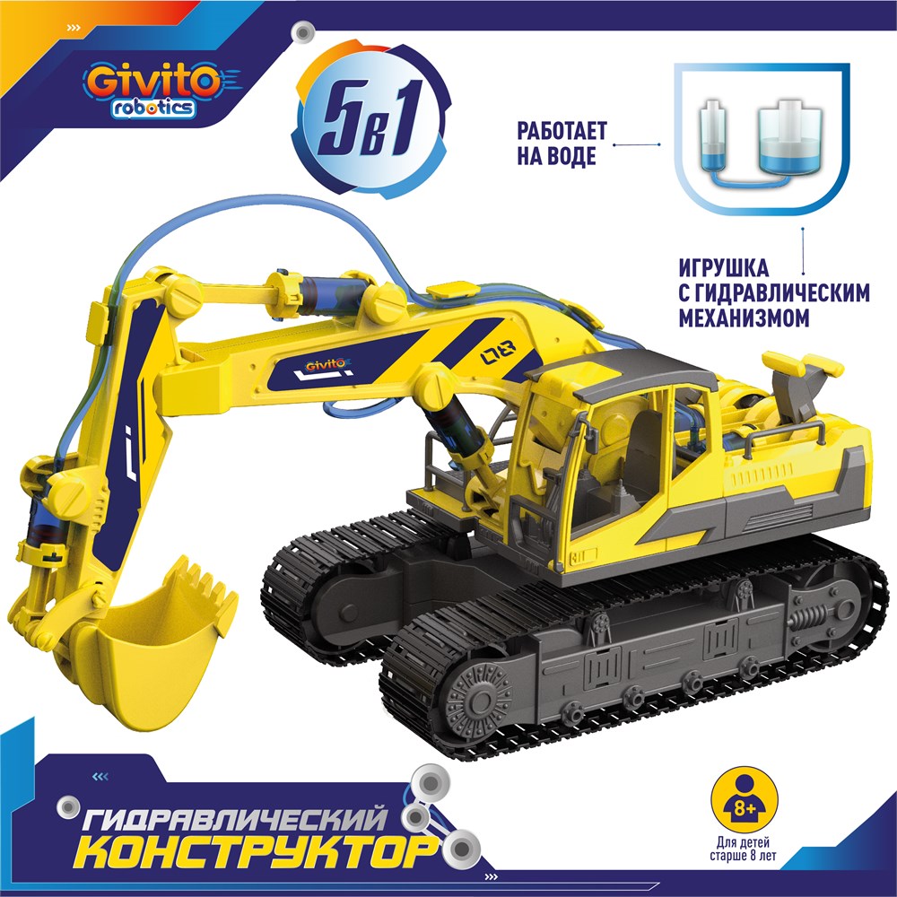 Игрушка-конструктор Givito 5в1 "Гидравлический конструктор", 168 деталей (экскаватор, подъемный кран, бревнозахват) G2411-489