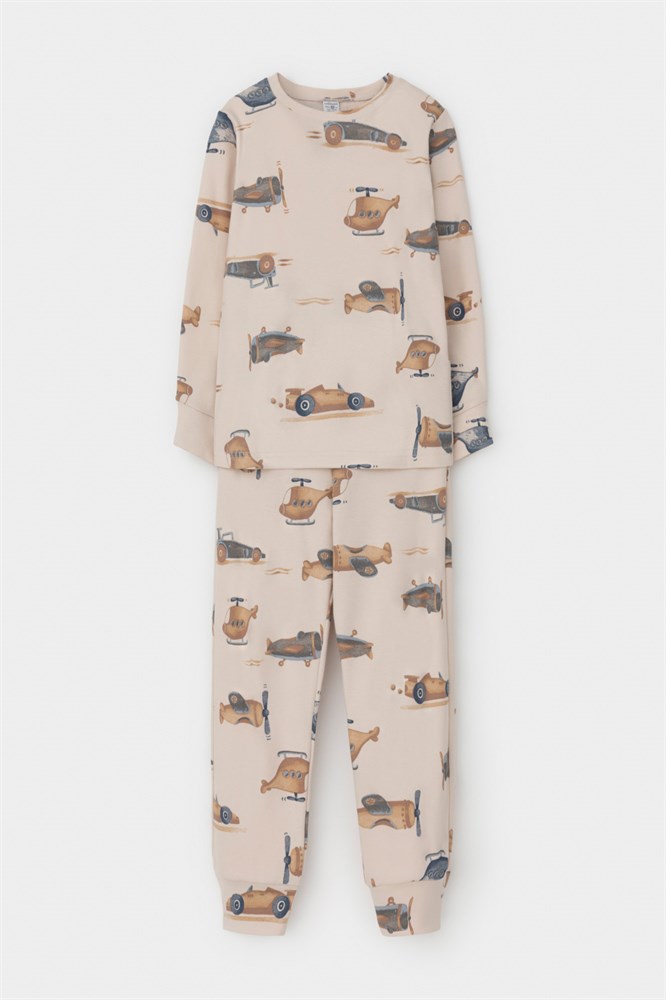 Трикотажная пижама из натурального хлопка. Джемпер с длинными втачными рукавами и брюки с эластичной резинкой в поясе. Мягкие манжеты на рукавах и по низу брюк. Оригинальная набивка выполнена из стойких текстильных гипоаллергенных красителей. Изделие сохраняет цвет и форму после многократных стирок. Все трикотажные полотна производятся в соответствии с нормами швейцарского сертификата ЭкоТекс. Тип ткани: Интерлок