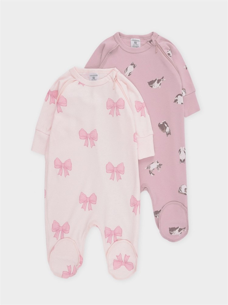 Комбинезоны для новорождённых из мягкого эластичного трикотажа интерлок, произведённого из натурального хлопка. В упаковке 2 штуки. Застёгиваются сбоку на молнию с мягкой защитой шеи и подбородка. Длинные рукава-реглан оканчиваются манжетами. Оригинальная набивка выполнена из стойких гипоаллергенных текстильных красителей. Все трикотажные полотна производятся в соответствии с нормами швейцарского сертификата ЭкоТекс.