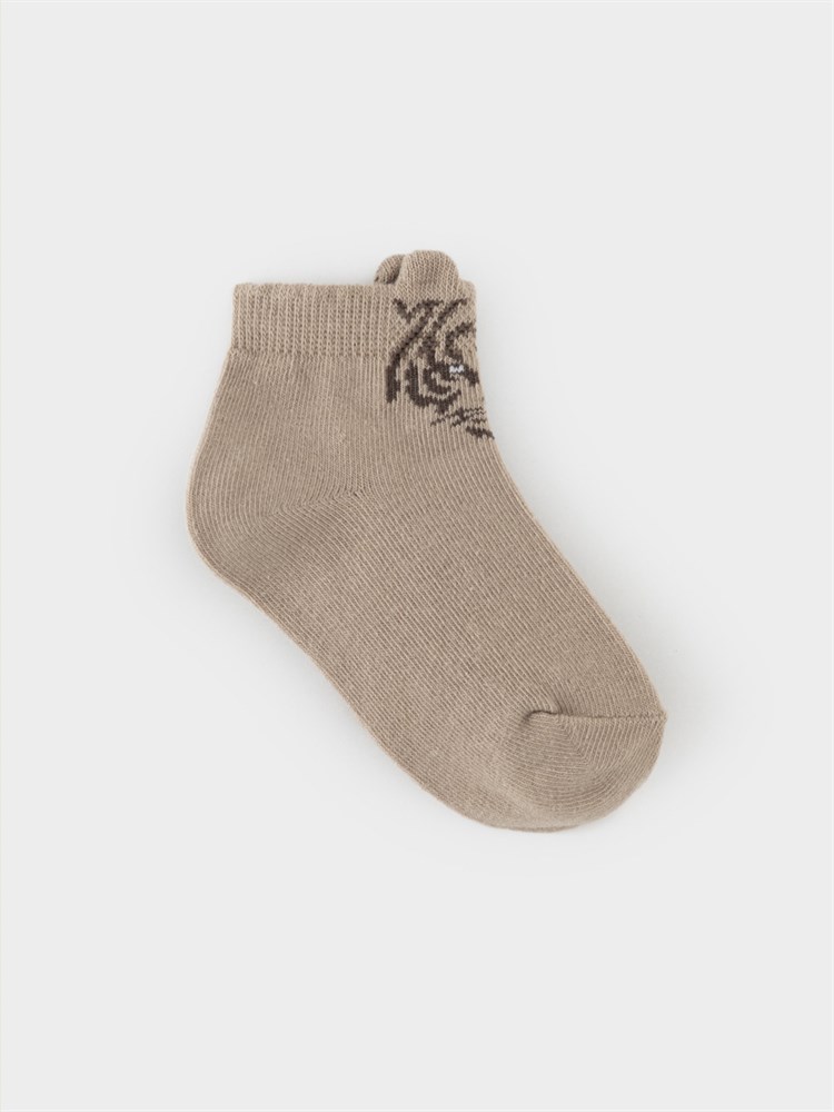Носки короткие детские с формованной пяткой и эластичной резинкой по краю. Украшены рисунком и объёмными элементами. Изделие сохраняет форму и стойкий цвет после многочисленных стирок.