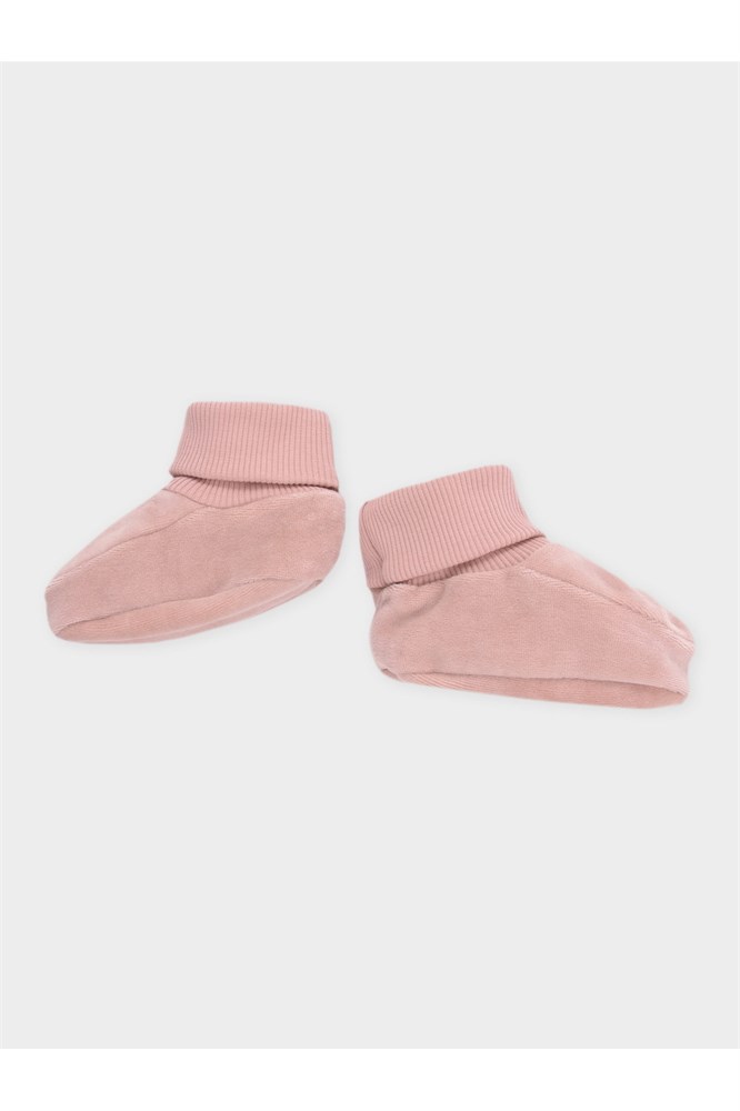 Тёплые пинетки из велюра для новорождённых. Внутри синтепон и подклад из натурального хлопка. Изделие имеет мягкие эластичные отвороты. Все трикотажные полотна производятся в соответствии с нормами Швейцарского сертификата ЭкоТекс.