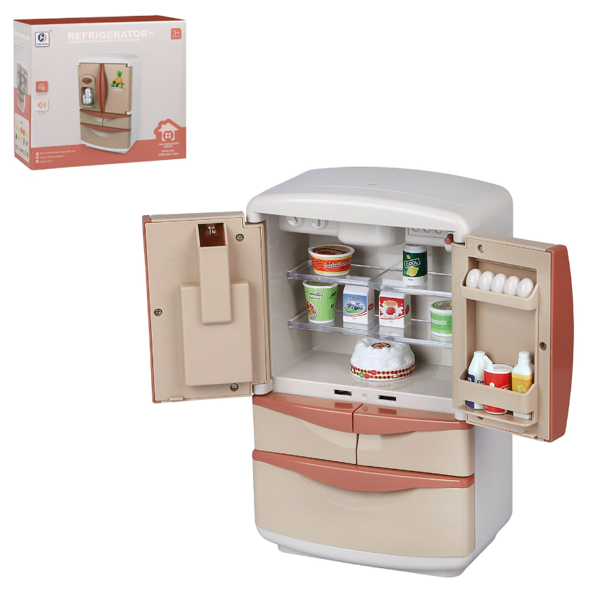 Главной изюминкой нашего детского холодильника является функция настоящего безопасного холодного пара. С помощью пипетки, поставляемой в комплекте, залейте воду в отверстие в верхней крышке холодильника и игры вашего ребёнка засияют новыми яркими красками! С внешней стороны холодильника находится отсек для льда: кубики помещаются в холодильник с внутренней стороны и при нажатии на рычаг лёд падает в стакан. Игра с детским холодильником сопровождается яркой подсветкой, музыкой и звуками имитации работы. Дверцы игрушечного холодильника открываются. В комплекте также множество маленьких аксессуаров: бутылочки, стаканчики, посуда. Размер в/к 20х9х17.5 см.