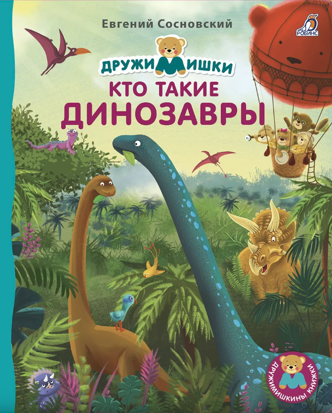 Книжка-картонка «КТО ТАКИЕ ДИНОЗАВРЫ» в стихах Евгения Сосновского познакомит вашего малыша с познавательной историей о путешествии мишек на Диноостров и их знакомстве с разными динозаврами.