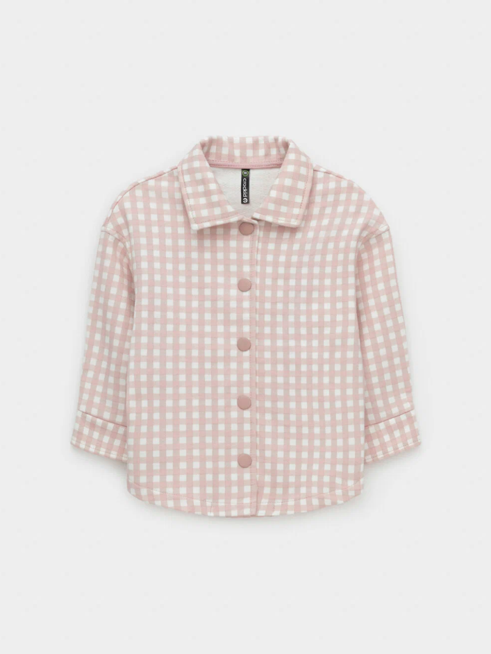 Свободная трикотажная рубашка для девочки из мягкого петельчатого футера. Застёгивается на кнопки. Модель с закругленным низом и спущенным плечом. Рисунок в клетку выполнен из стойких текстильных гипоаллергенных красителей. Изделие сохраняет цвет и форму после многократных стирок. Все трикотажные полотна производятся в соответствии с нормами швейцарского сертификата ЭкоТекс.
