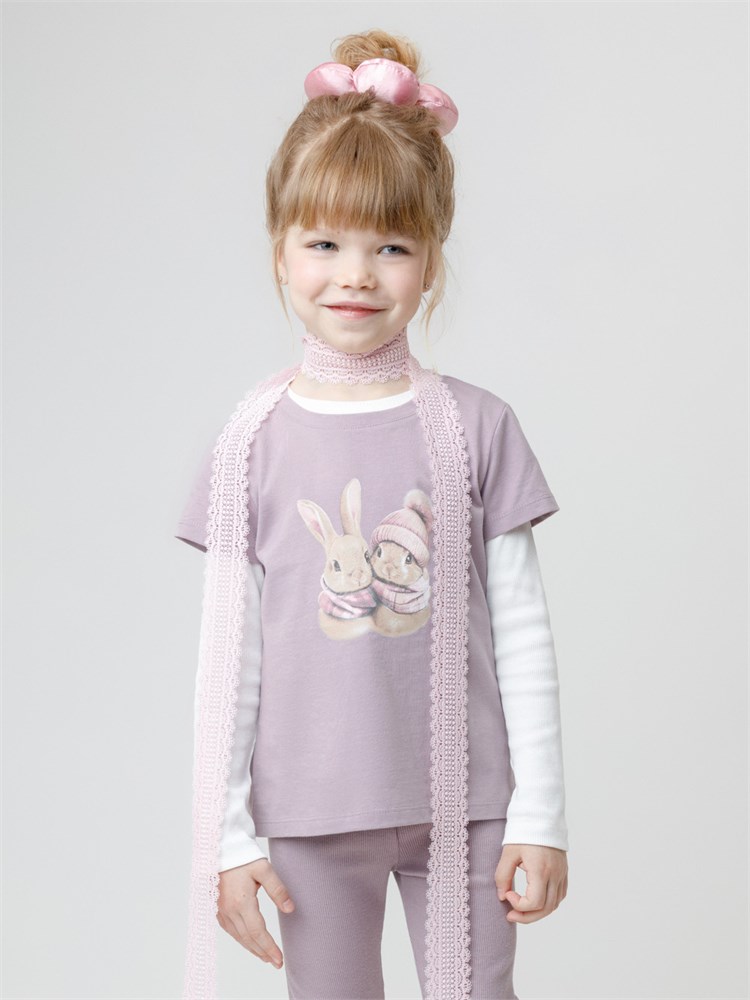 Футболка с удлинённой спинкой для девочки. Изготовлена из гладкого трикотажа, произведённого из высококачественного натурального хлопка. Для удобства одевания имеется застёжка на кнопки в размерах 92 и 98. Оригинальный принт выполнен из стойких текстильных гипоаллергенных красителей. Изделие сохраняет цвет и форму после многократных стирок. Все трикотажные полотна производятся в соответствии с нормами швейцарского сертификата ЭкоТекс.