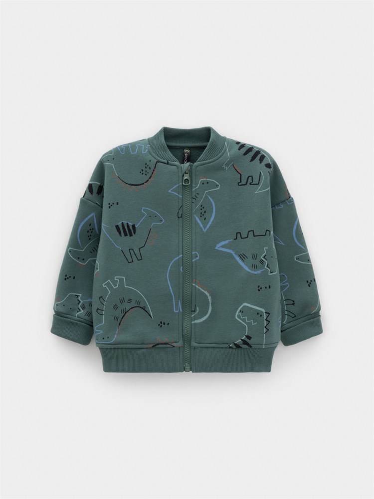 Бомбер для мальчика на молнии. Изготовлен из мягкого петельчатого футера трёхнитки. В составе 80% натурального хлопка и 20% полиэстера, при этом полиэстер ввязан внутрь по особой технологии и не соприкасается с кожей. Воротник, манжеты и пояс выполнены из эластичного полотна. По бокам два кармана. Изделие сохраняет цвет и форму после многократных стирок. Все трикотажные полотна производятся в соответствии с нормами швейцарского сертификата ЭкоТекс.