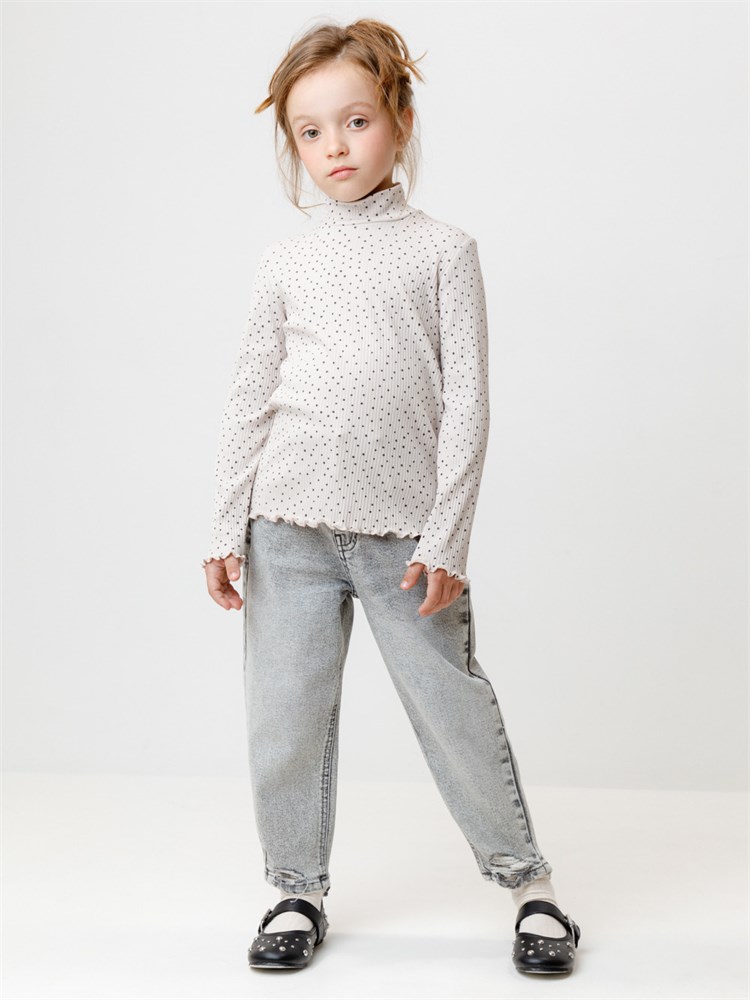 Водолазка для девочки из эластичного трикотажа в рубчик. Изделие сохраняет цвет и форму после многократных стирок. Все трикотажные полотна производятся в соответствии с нормами швейцарского сертификата ЭкоТекс.