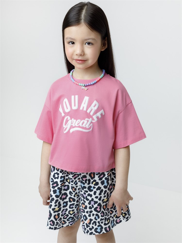 Футболка для девочки из высококачественного трикотажного полотна. Оригинальный принт выполнен из стойких текстильных гипоаллергенных красителей. Изделие сохраняет цвет и форму после многократных стирок. Все трикотажные полотна производятся в соответствии с нормами швейцарского сертификата ЭкоТекс.