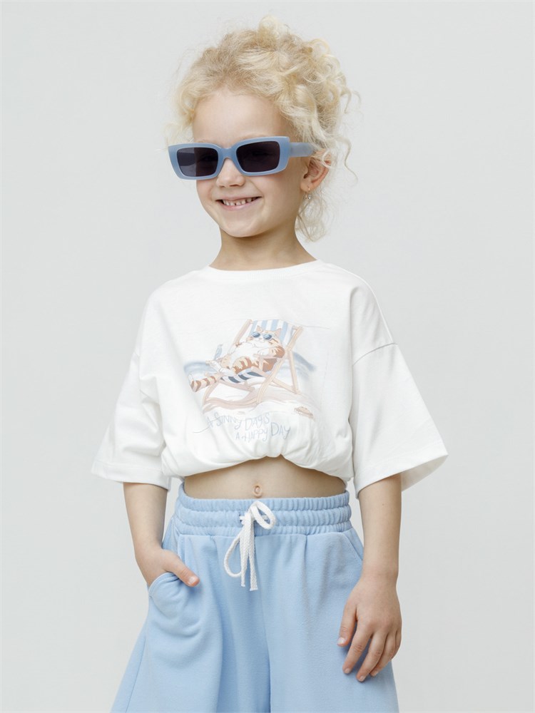 Футболка для девочки из высококачественного трикотажного полотна. Оригинальный рисунок выполнен из стойких текстильных гипоаллергенных красителей. Изделие сохраняет цвет и форму после многократных стирок. Все трикотажные полотна производятся в соответствии с нормами швейцарского сертификата ЭкоТекс.