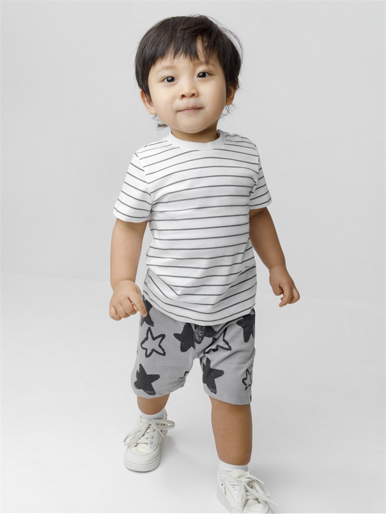 Лёгкие шорты для мальчика из гладкого трикотажа супрем. Эластичный пояс на резинке регулируется по ширине с помощью шнурка. Изделие сохраняет цвет и форму после многократных стирок. Все трикотажные полотна производятся в соответствии с нормами швейцарского сертификата ЭкоТекс.