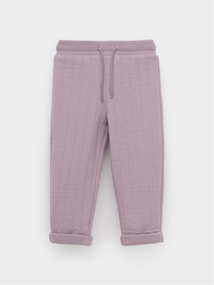 Тёплые брюки для девочки из мягкого капитония. Капитоний – это стёганое трикотажное полотно с утеплителем из полиэстеровой нити. Модель с эластичным поясом на резинке регулируется по ширине при помощи шнурка. Все трикотажные полотна производятся в соответствии с нормами швейцарского сертификата ЭкоТекс.