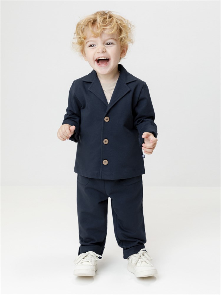 Трикотажные брюки для мальчика из мягкого петельчатого футера. Эластичный пояс на резинке регулируется по ширине с помощью шнурка. Изделие сохраняет цвет и форму после многократных стирок. Все трикотажные полотна производятся в соответствии с нормами швейцарского сертификата ЭкоТекс.
