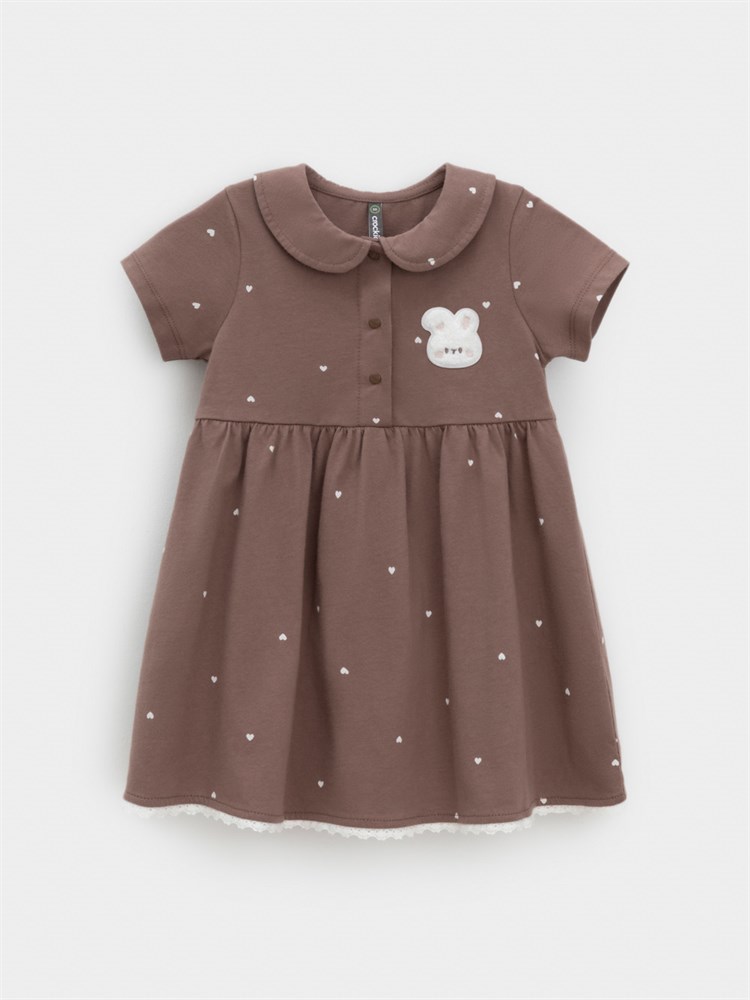 Платье с воротничком для девочки. Изготовлено из высококачественного гладкого трикотажа, произведённого из натурального хлопка. Застёгивается спереди на кнопки и украшено кружевом. Оригинальный рисунок выполнен из стойких текстильных гипоаллергенных красителей. Изделие сохраняет цвет и форму после многократных стирок. Все трикотажные полотна производятся в соответствии с нормами швейцарского сертификата ЭкоТекс.
