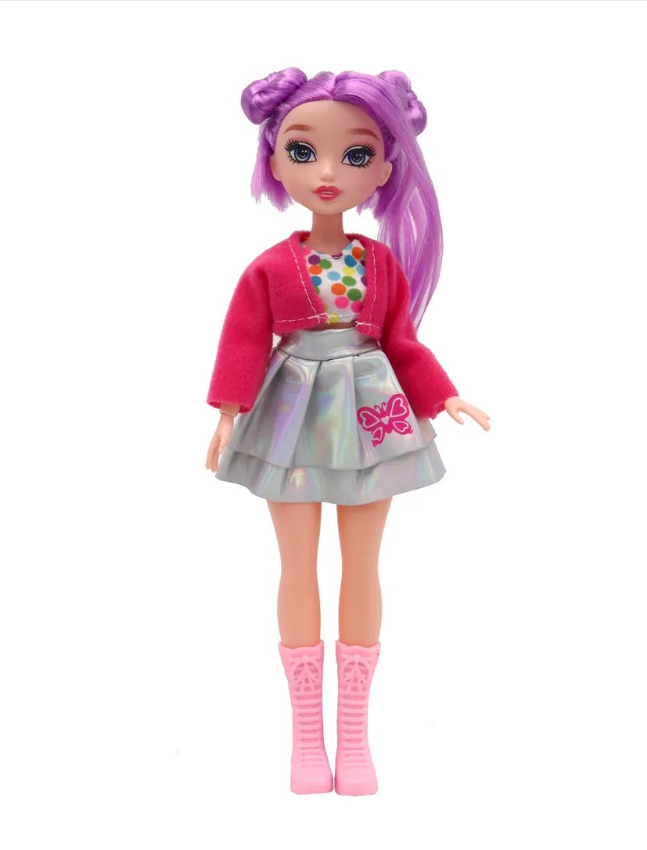 Шарнирная кукла с цветными волосами и 5 аксессуарами внутри. Настоящий сюрприз на день рождения для девочки, за счет эффектной голографической коробки. Наполнит детство вашего ребенка радостью и воображением, а также развивает творческие навыки и мелкую моторику за счет разнообразия аксессуаров. Благодаря шарнирной конструкцией, обладает гибкостью, позволяющей Эмили принимать различные позы и живые движения. Лицо и макияж детально прорисованы, волосы легко заплести в любую прическу, а одежду можно снять и поменять на другую. В сочетании с ярким воображением ребенка подарит много часов увлекательной игры. Эта красавица с фиолетовыми волосами очень гибкая и будет отличным подарком на день рождения девочке. Такую игрушку ребенку удобно брать на прогулку, в дорогу, в детский сад или просто играть с друзьями и подругами дома. Станет любимой игрушкой для вашего ребенка. Пользуется популярностью и среди подростков для коллекционирования. Также порадует и взрослых девушек, которые коллекционируют кукол.