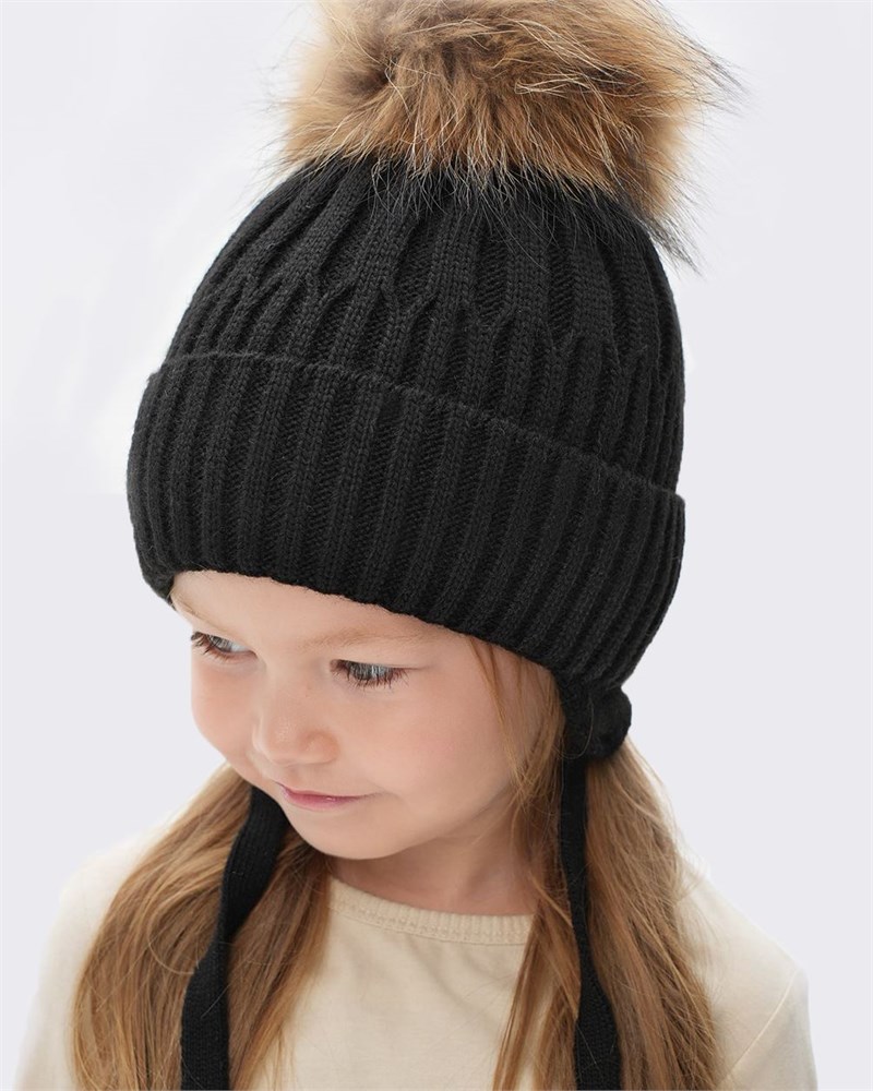 Шапка из вязаного полотна с отворотом, с помпоном из натурального меха. Верх: 82% акрил, 10% эластан, 8% полиамид;  Утеплитель: синтепон, подклад 100% хлопок.