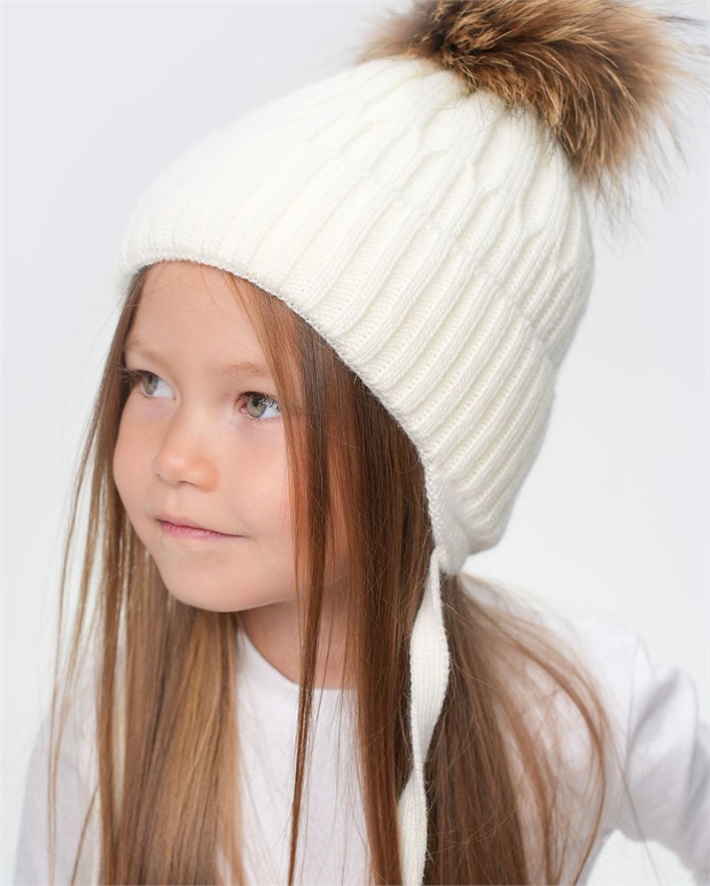 Шапка из вязаного полотна с отворотом, с помпоном из натурального меха. Верх: 82% акрил, 10% эластан, 8% полиамид;  Утеплитель: синтепон, подклад 100% хлопок.