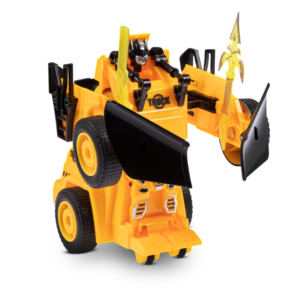 В сложенном виде игрушка представляет собой современную строительную технику, которая при нажатии кнопки на задней части корпуса трансформируется в робота.