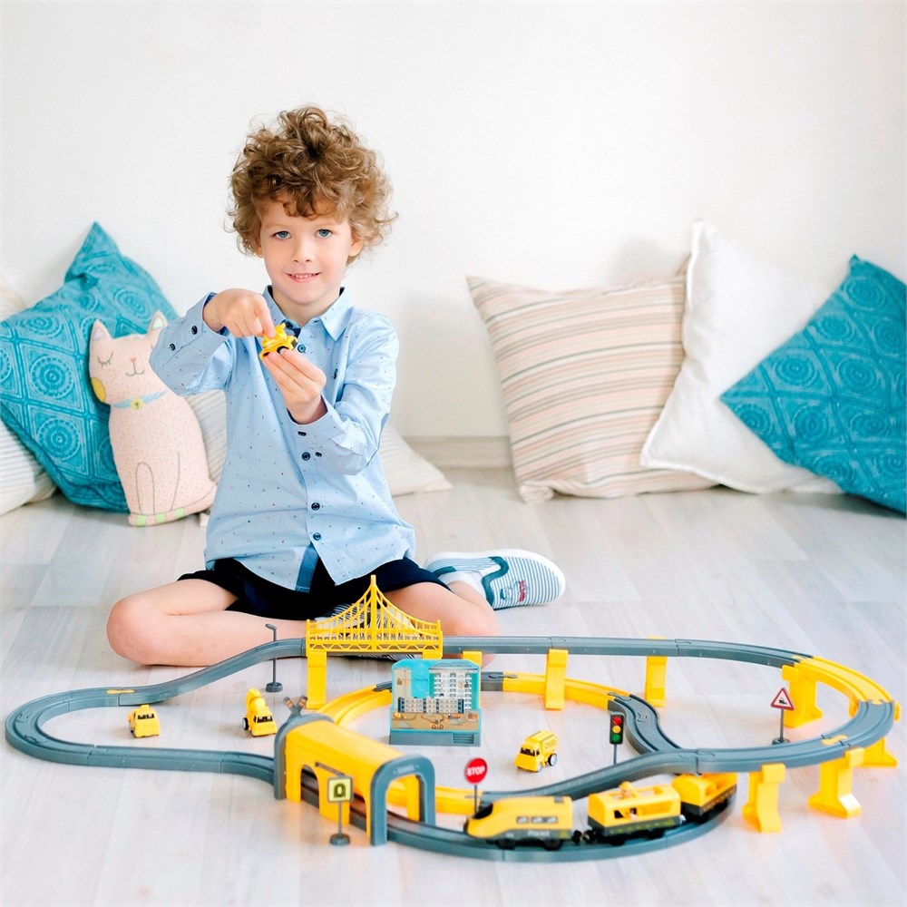 Железная дорога игрушка "Строительная площадка, 92 предмета", на батарейках со звуком
