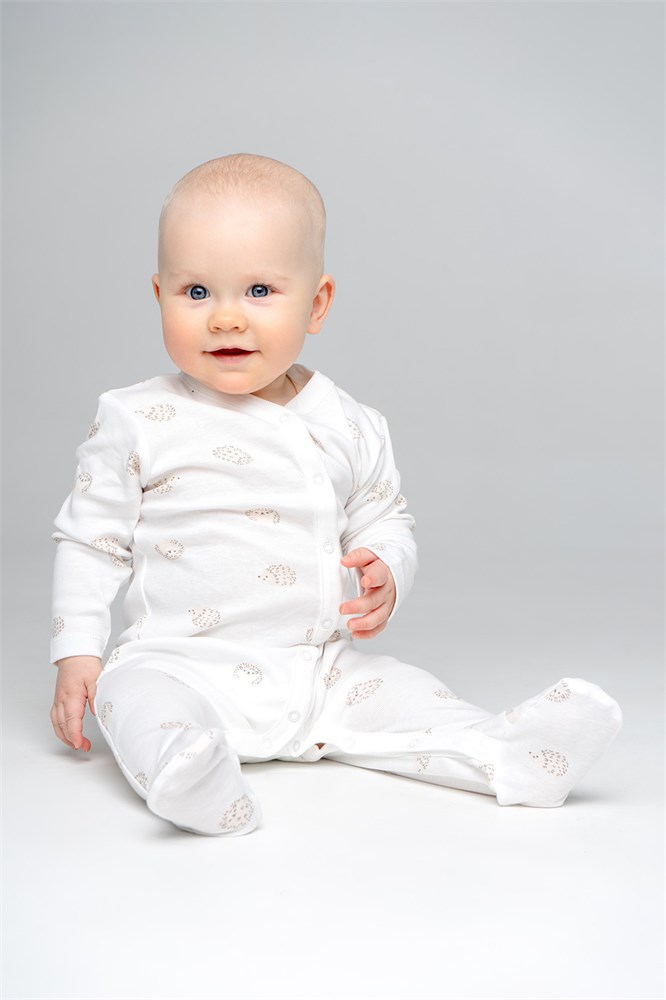 Комбинезон для новорожденных из мягкого, эластичного трикотажа, произведенного из натурального хлопка. Изделие застегивается на кнопки. В 56 размере на рукавах предусмотрены антицарапки, швы выполнены наружу. Оригинальная набивка выполнена из стойких, гипоаллергенных текстильных красителей. Все трикотажные полотна производятся в соотвествии с нормами Швейцарского сертификат ЭкоТекс