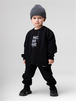 Костюм для детей ясельного возраста. Толстовка прямого силуэта свободная с центральной бортовой застёжкой на тесьму-молния, рукавом реглан, с притачной манжетой. Толстовка с поясом по низу изделия. Горловина округлой формы, оформлена рибаной. Брюки прямые на притачном поясе с внутренней резинкой. Брюки с манжетой.