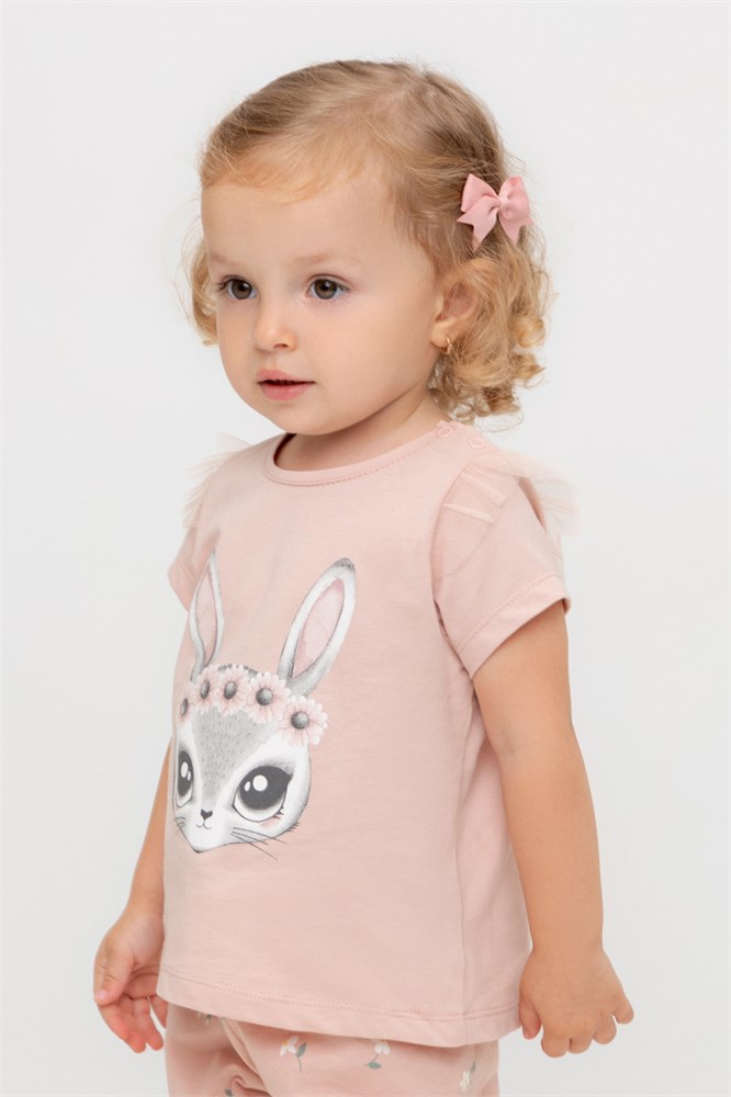 Футболка для девочки из высококачественного трикотажного полотна. Для удобства одевания на плече предусмотрена застежка на кнопки. Оригинальный принт выполнен из стойких текстильных гипоаллергенных красителей.